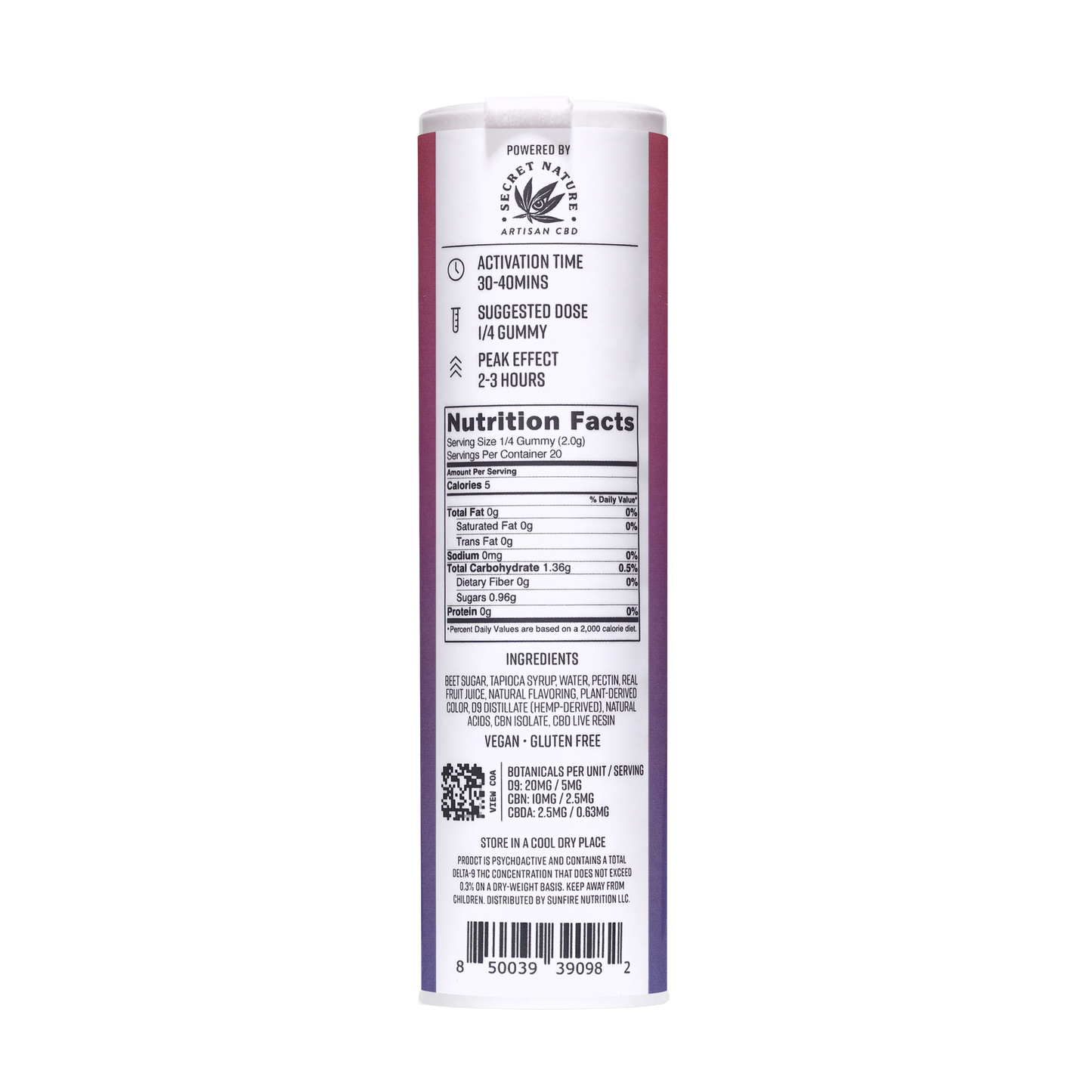 - Ships in three discreet 5 gummy tubes
